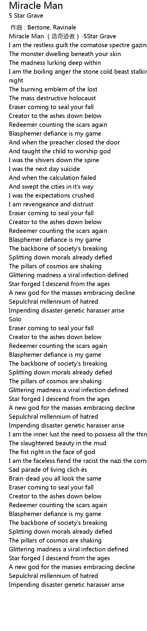 | [00:00.00] | Miracle Man zào qí jī zhě 5Star Grave |