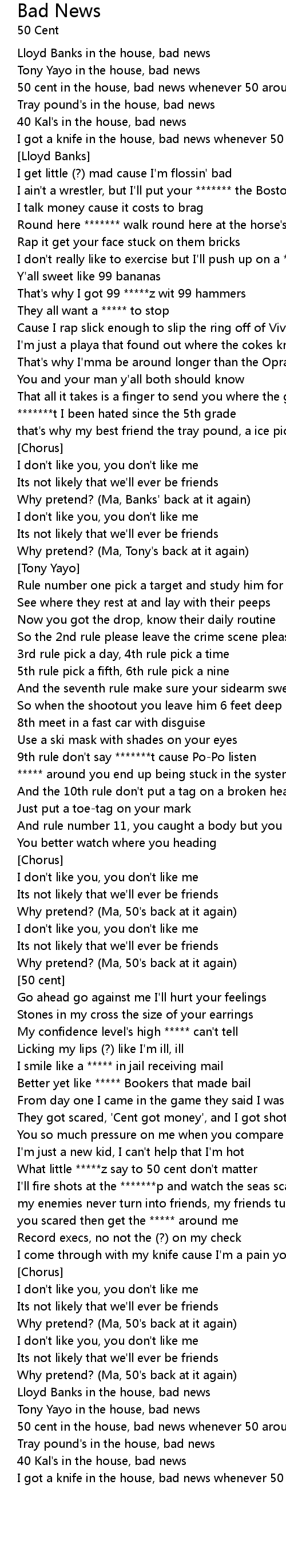 | 50 cent in the house, bad news whenever 50 around its bad news | |