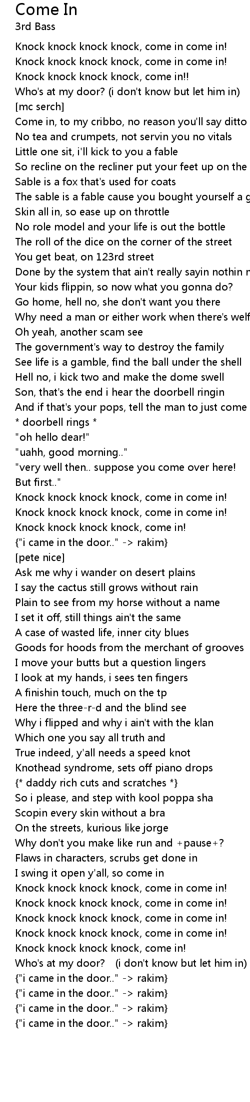 | Knock knock knock knock, come in come in! | |