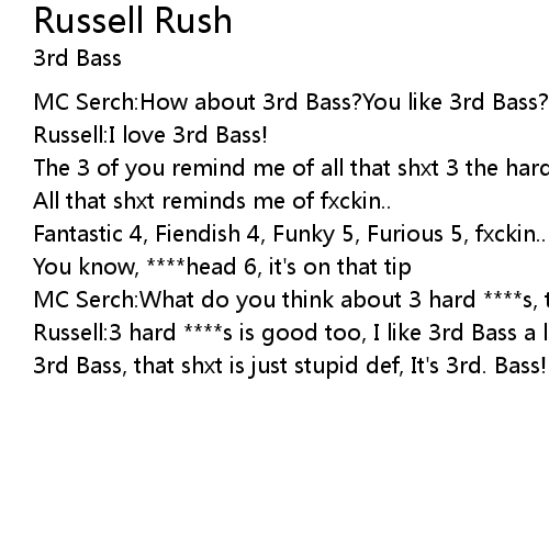 Russell:3 hard ****s is good too, I like 3rd Bass a lot |