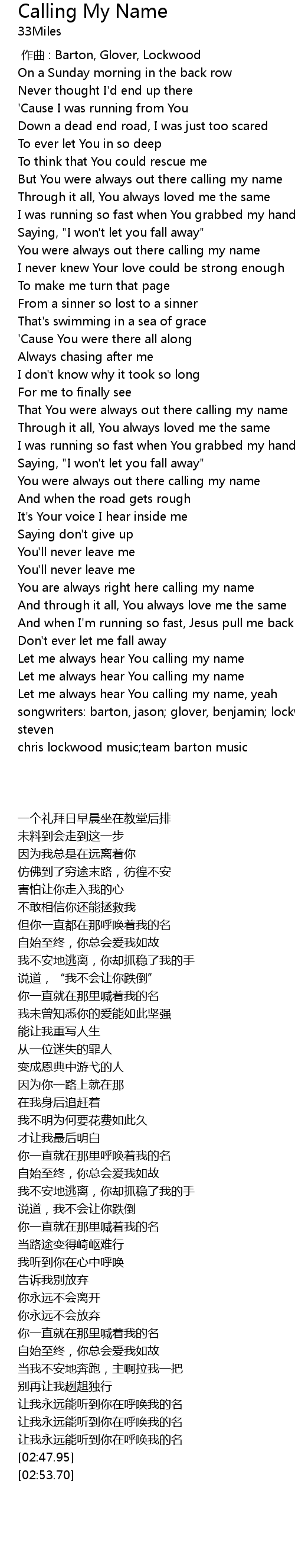 | [02:37.74] | Let me always hear You calling my name, yeah |