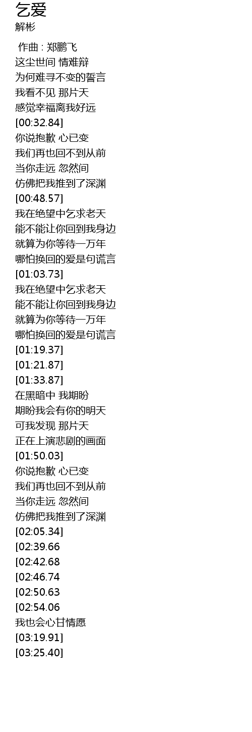 | [00:33.40] | 你说抱歉 心已变 |