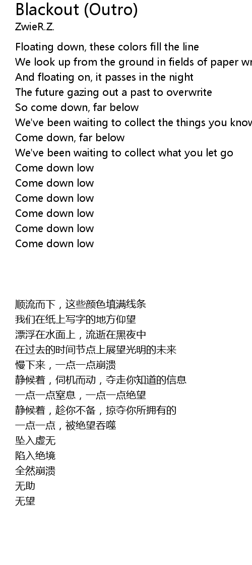 So come down, far below |