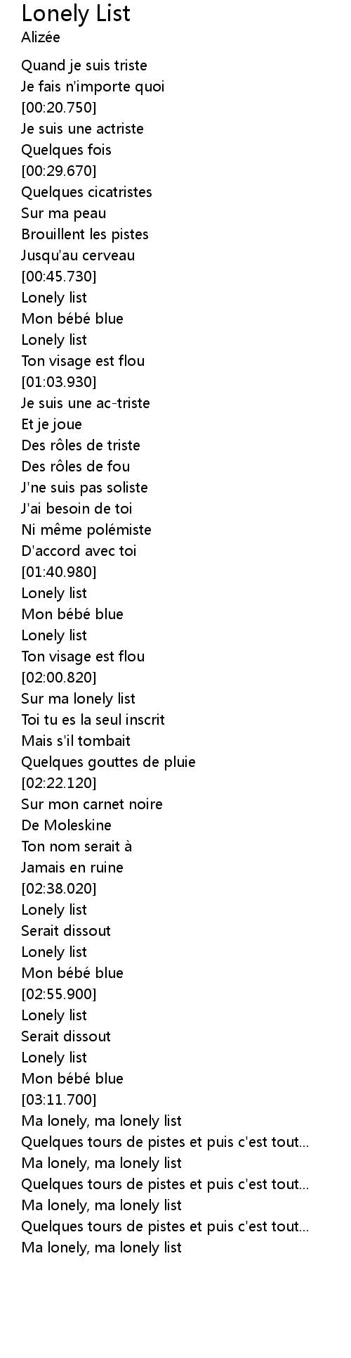 | [02:07.640] | Sur ma lonely list |