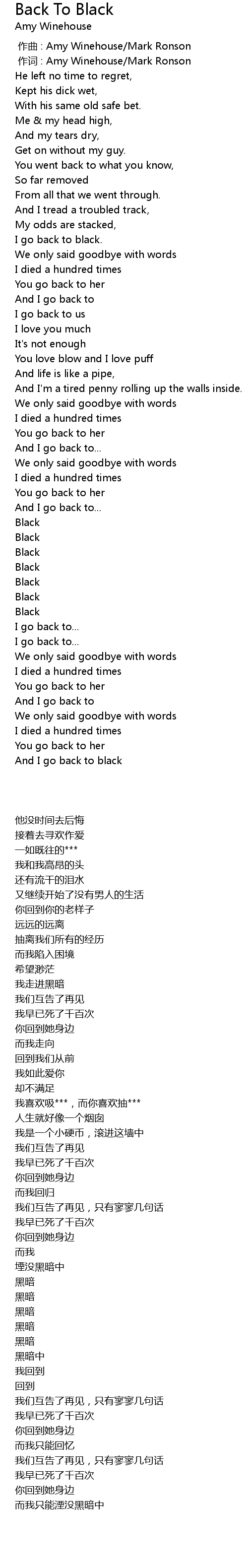 | [00:01.00] | 作词 : Amy Winehouse/Mark Ronson |
