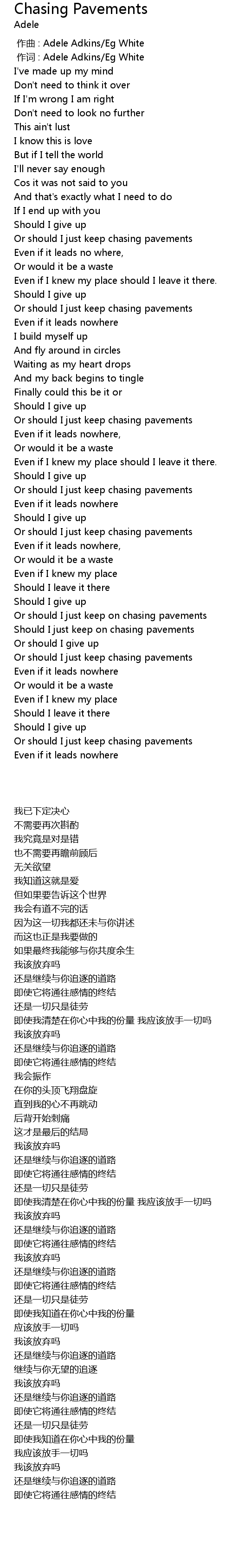 | [02:36.890] | Or should I just keep on chasing pavements |