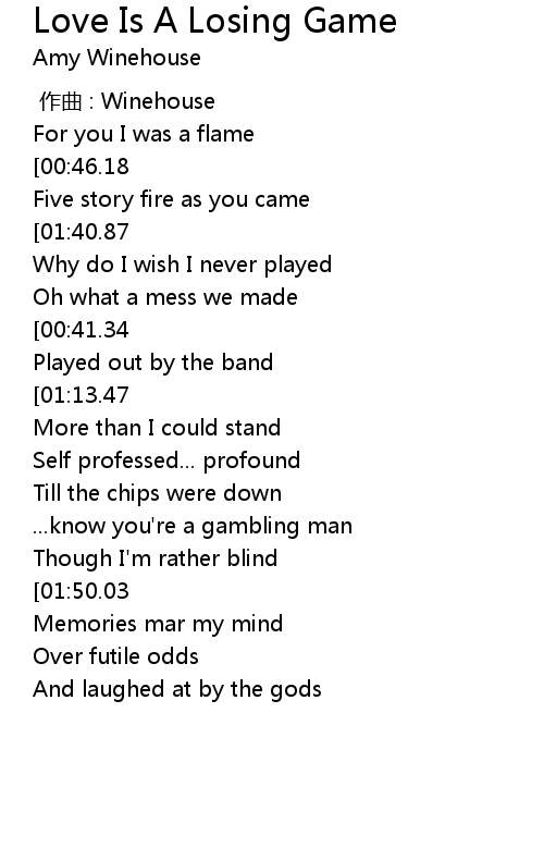 | [02:24.52][00:46.18][00:22.52][00:10.99] | Love is a losing game |
