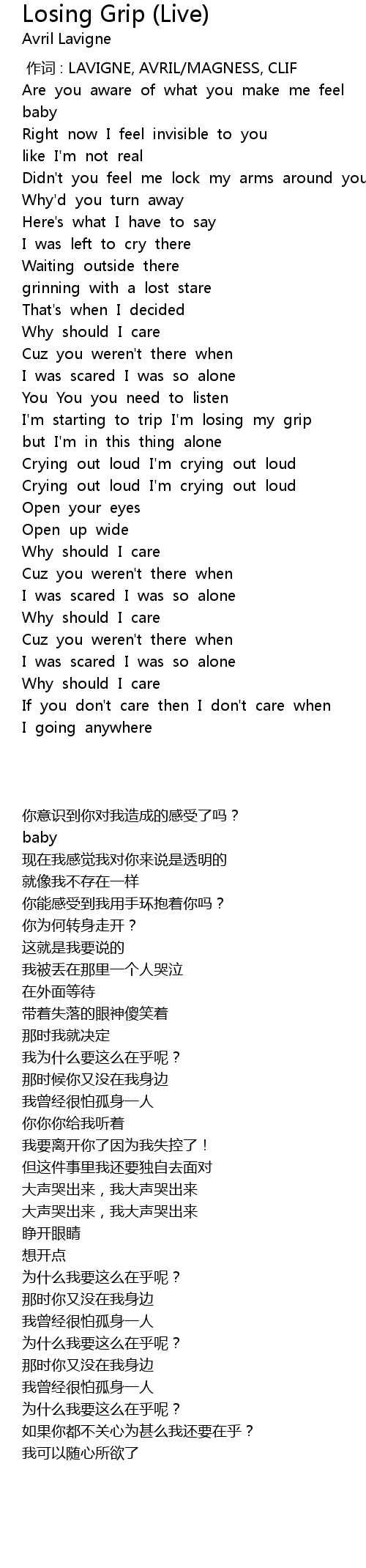 | [00:00.00] | 作词 : LAVIGNE, AVRIL/MAGNESS, CLIF |