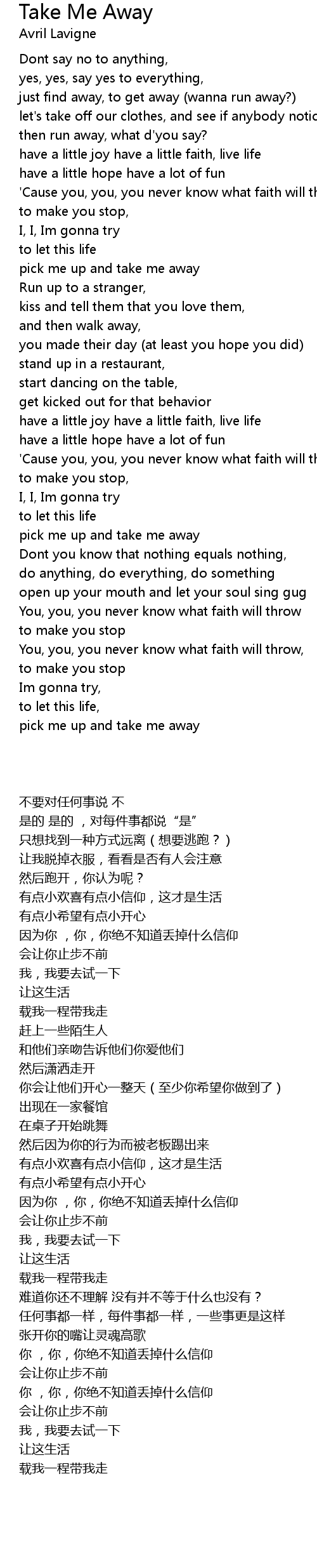 pick me up and take me away |
