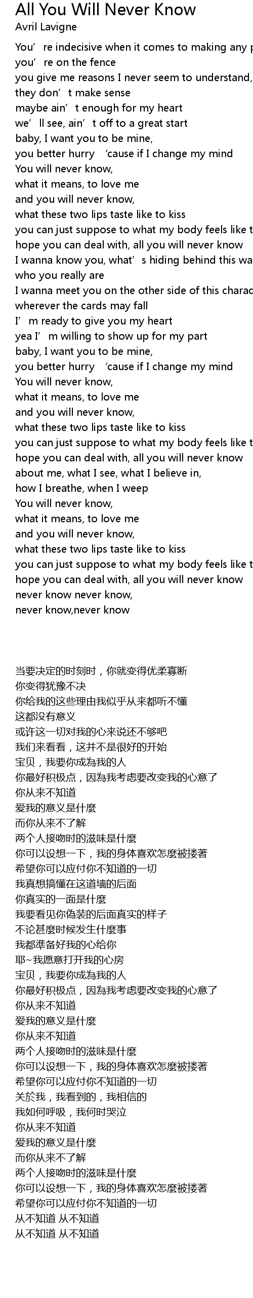 | [03:24.310] | never know,never know |