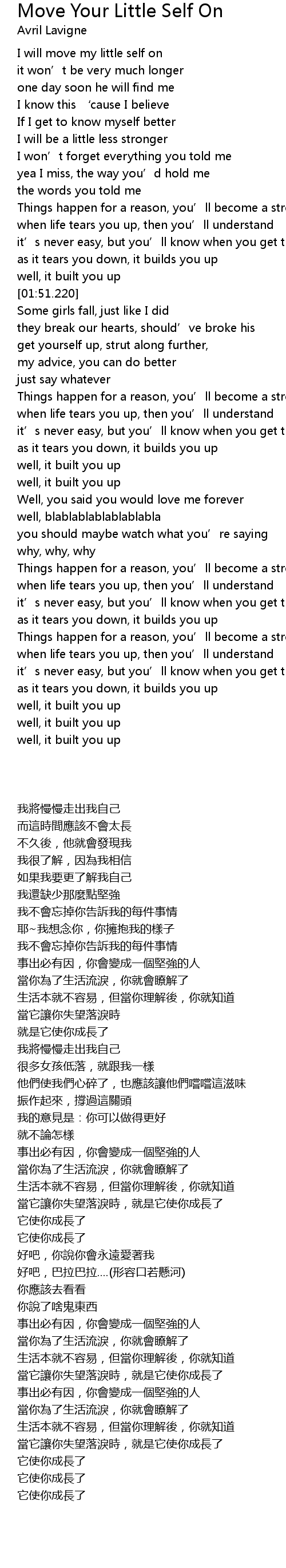 | [03:12.330] | Things happen for a reason, you' ll become a stronger person |