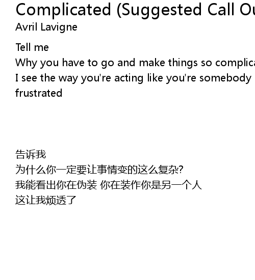 | Song | Complicated (Suggested Call Out Research Hook) |