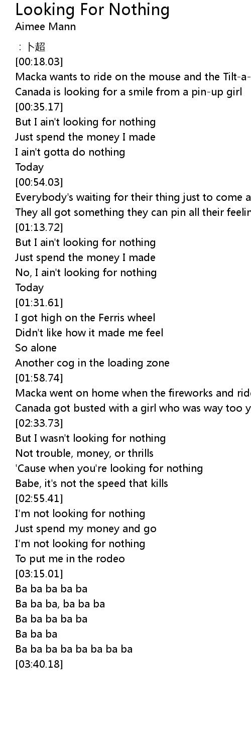 | [02:46.18] | 'Cause when you're looking for nothing |