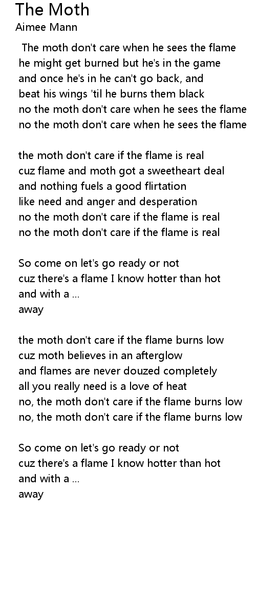 no the moth don't care when he sees the flame |