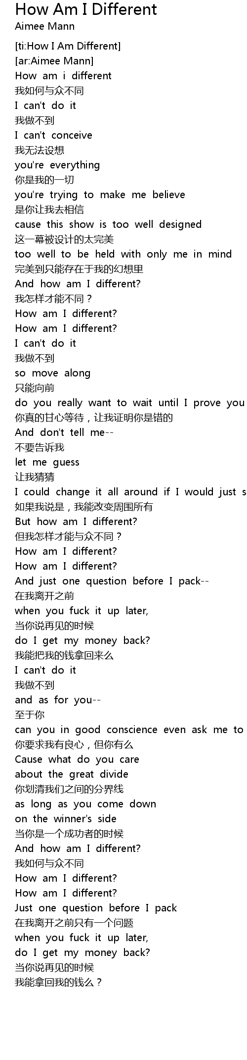 | [ti:How I Am Different] | |