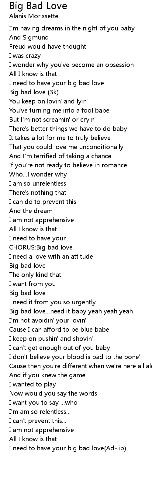 Big bad love...need it baby yeah yeah yeah |