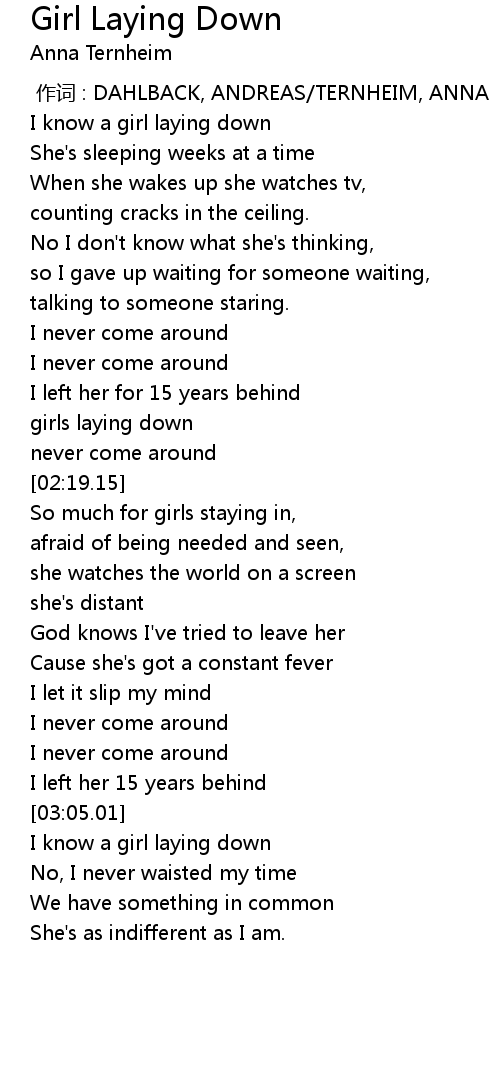 | [00:00.00] | 作词 : DAHLBACK, ANDREAS/TERNHEIM, ANNA |