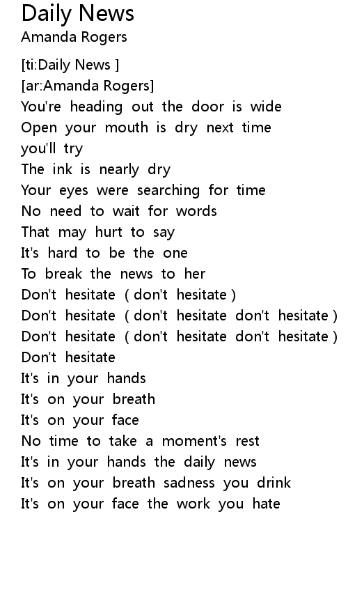 | [01:18.419] | Don't hesitate (don't hesitate don't hesitate) |