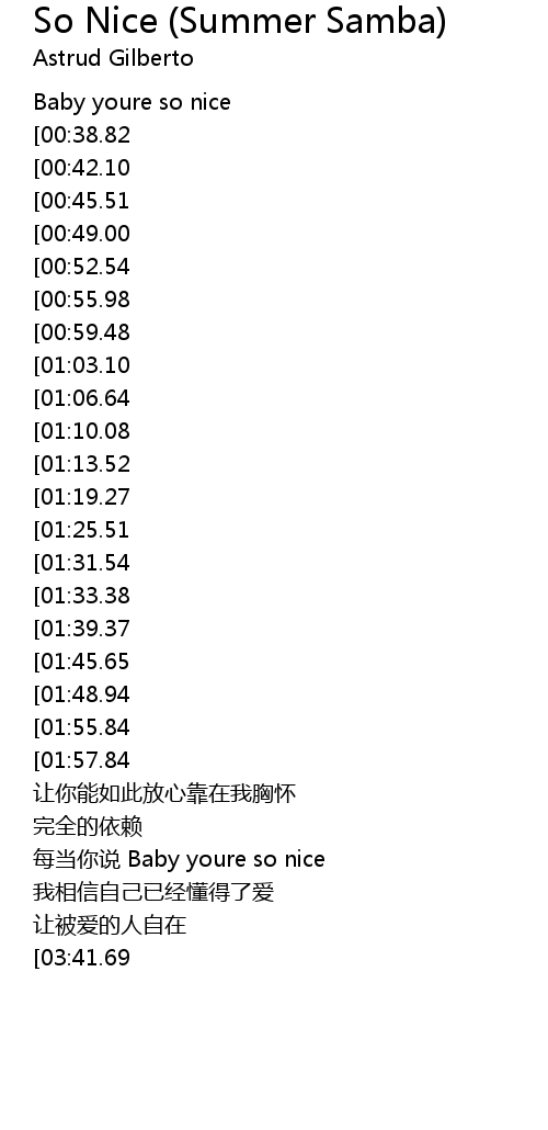 | [04:31.15][03:41.69][02:11.77] | Baby youre so nice |