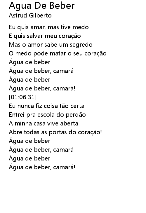 | [01:46.54] | Água de beber, camará |