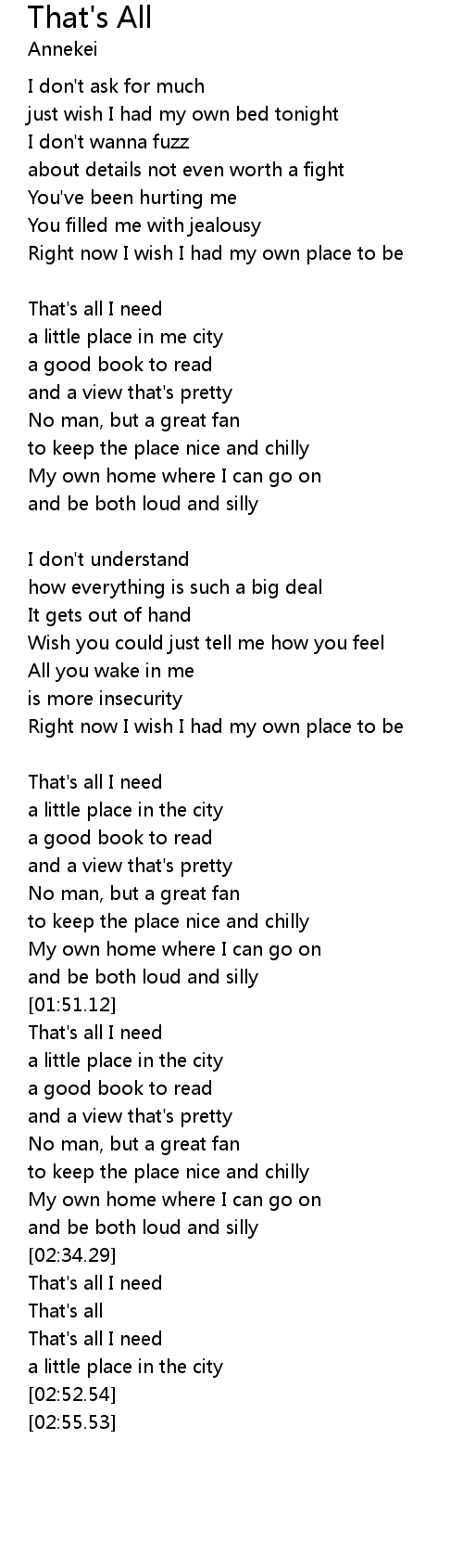 | [00:34.48] | That's all I need |