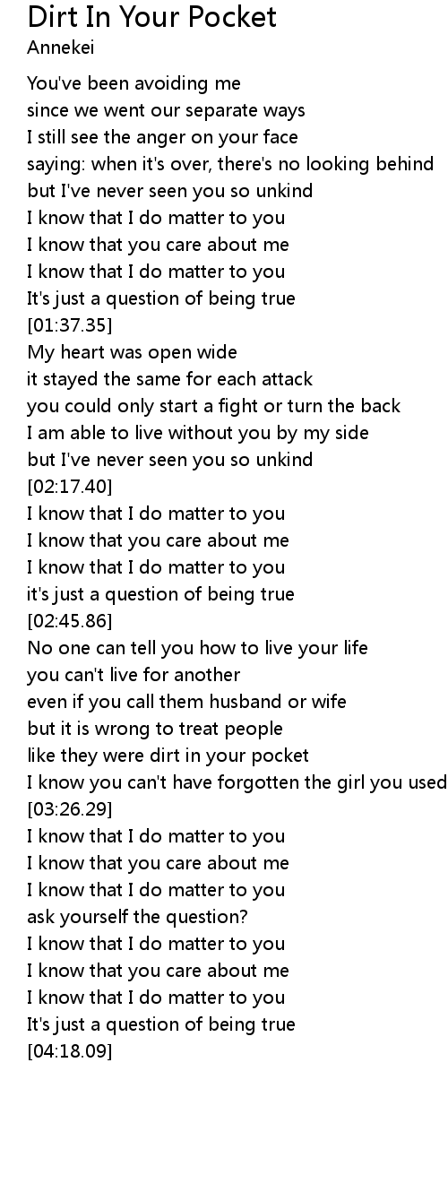 | [03:19.93] | I know you can't have forgotten the girl you used to see |
