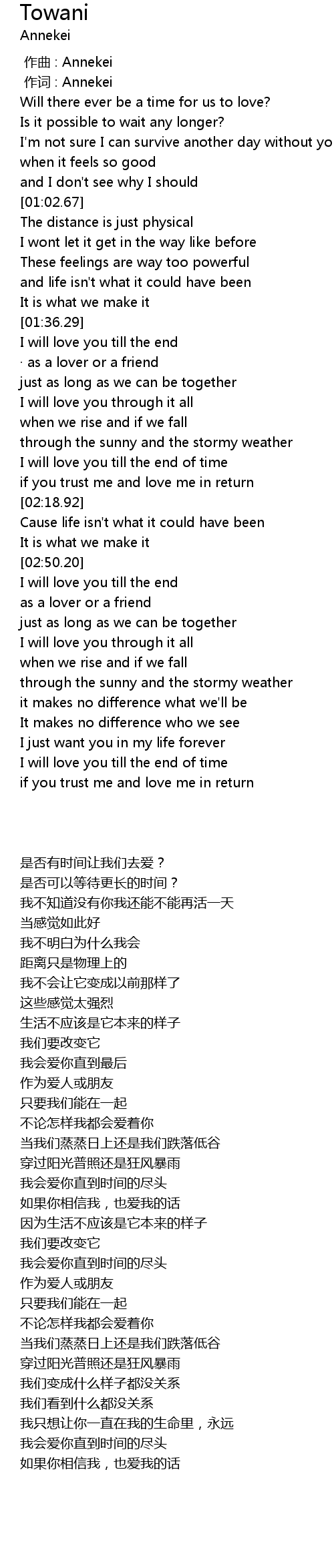 | [02:51.00] | I will love you till the end |