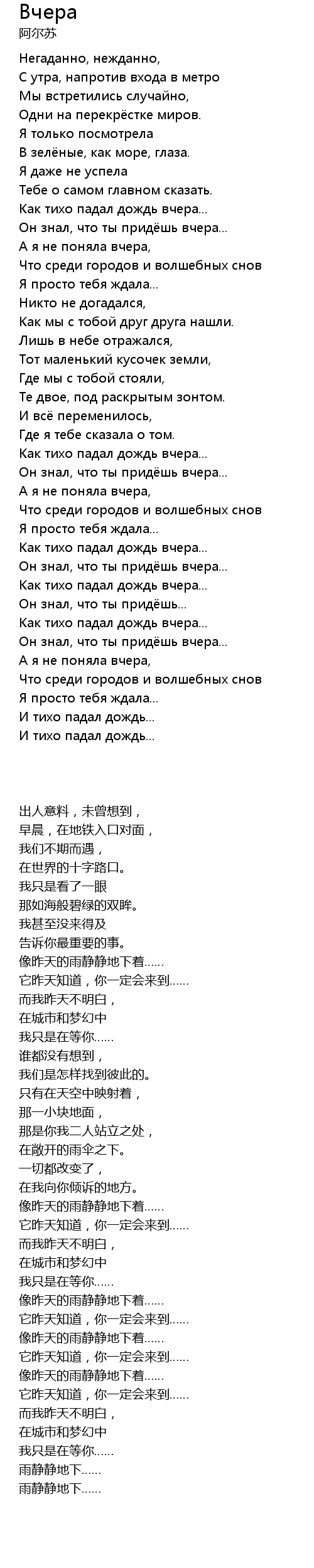 Как тихо падал дождь вчера... |