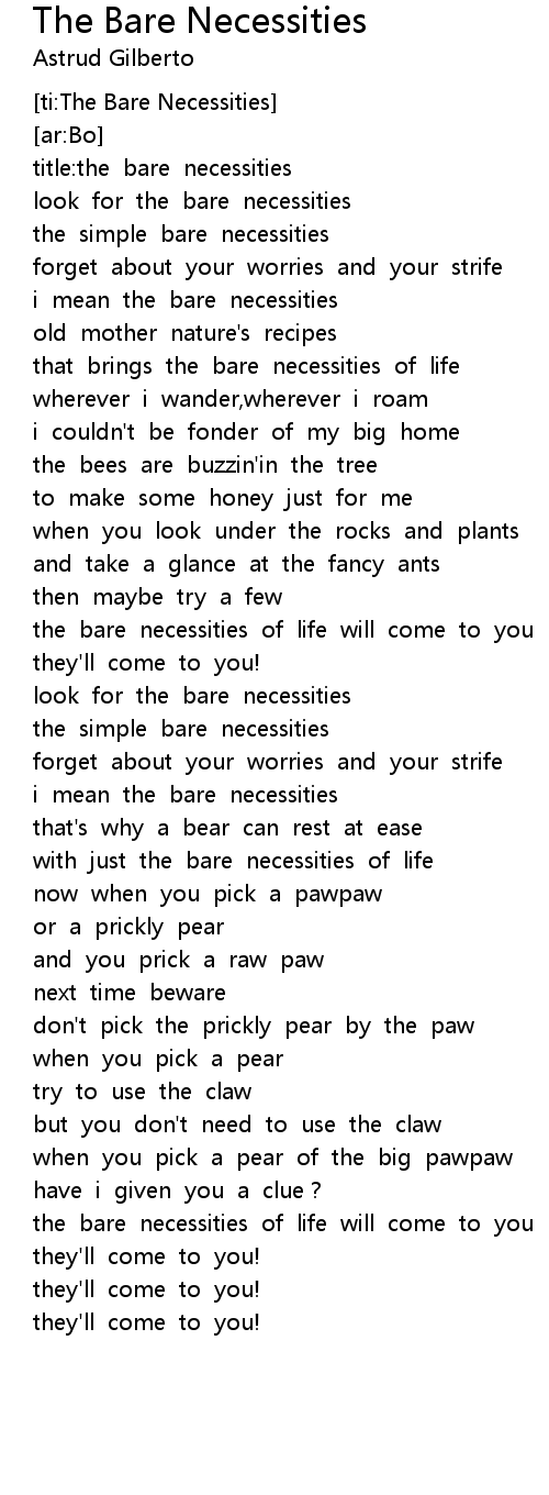the bare necessities of life will come to you |
