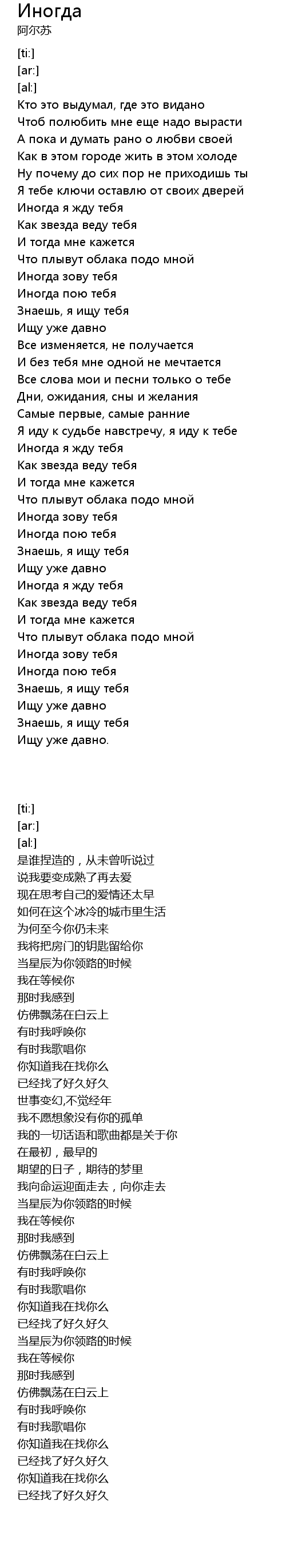 Иногда пою тебя |