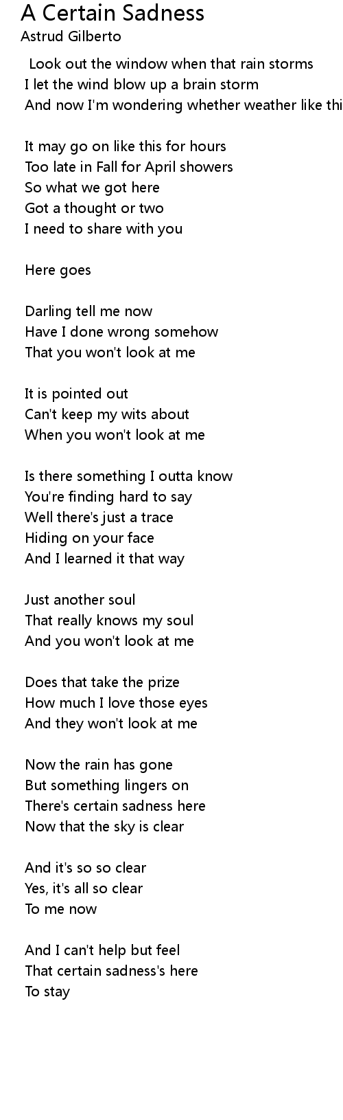 That certain sadness's here |