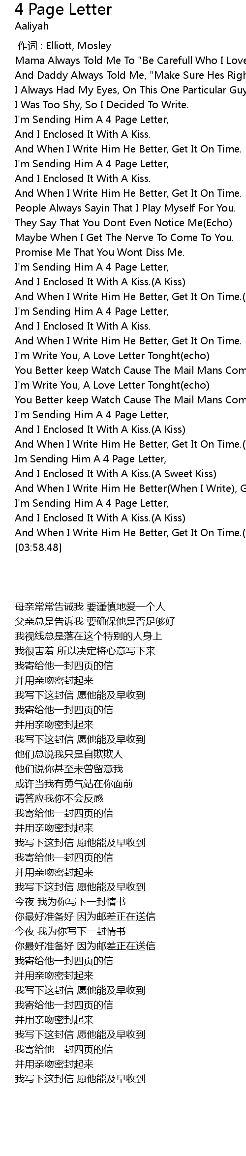 | [00:56.83] | I' m Sending Him A 4 Page Letter, |