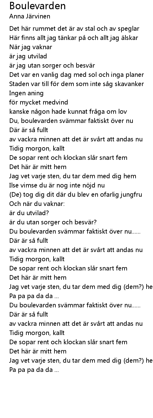 | Du, boulevarden sv mmar faktiskt ver nu | |