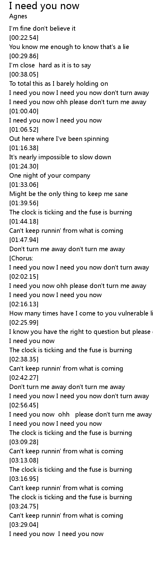 I need you now |