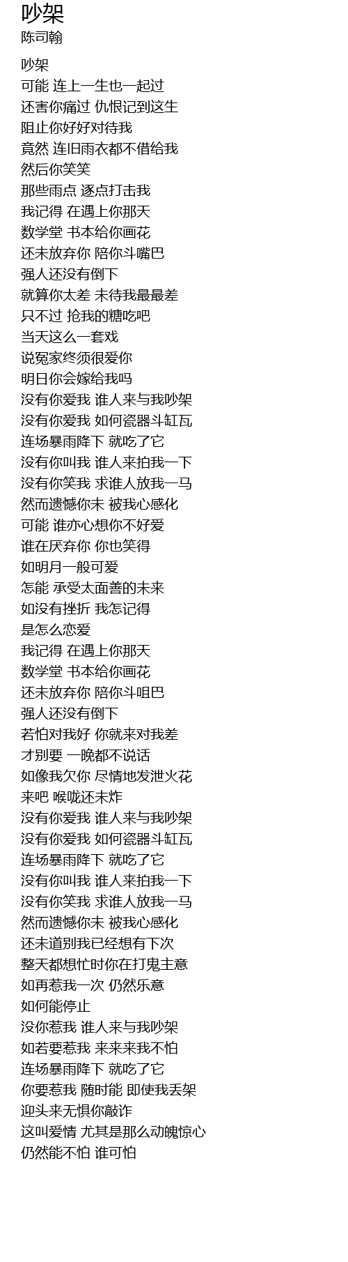 | [02:54.24] | 没有你爱我 谁人来与我吵架 |