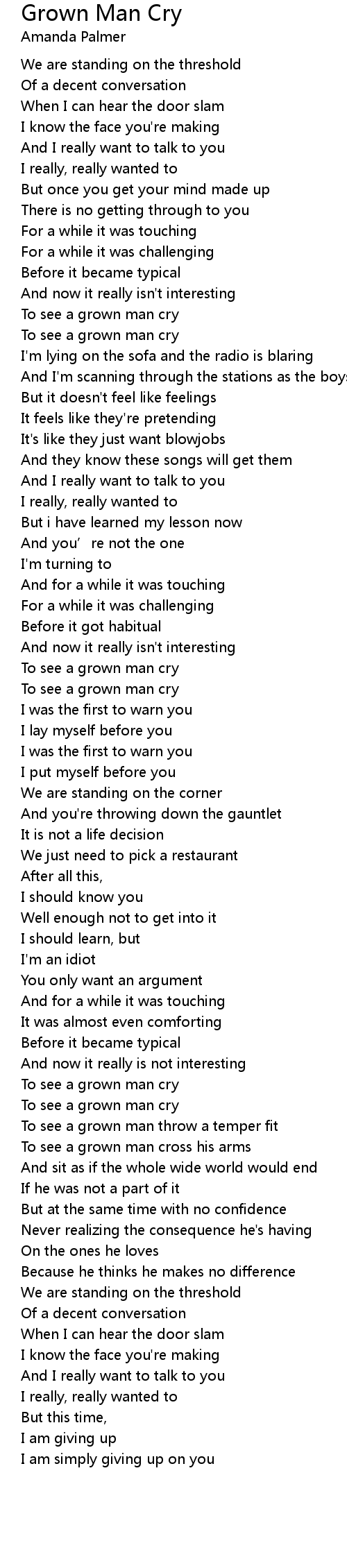 | Song | Grown Man Cry |