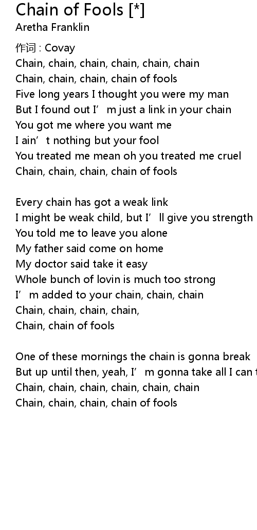 | Chain, chain, chain, chain of fools | |
