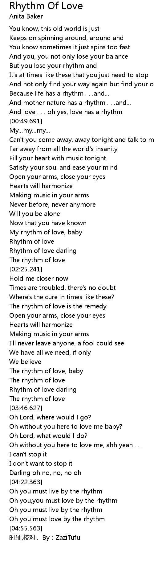 | [04:32.420] | Oh you, you must love by the rhythm |