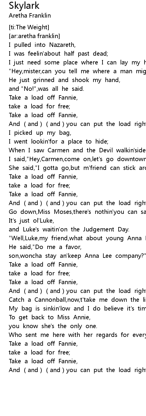 | [01:21.96] | And (and)(and)you can put the load right on me. |