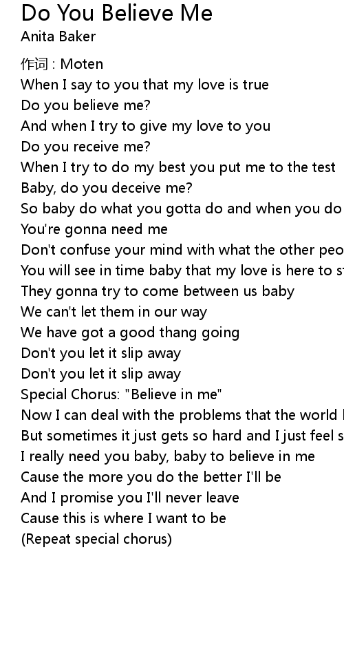 | I really need you baby, baby to believe in me | |