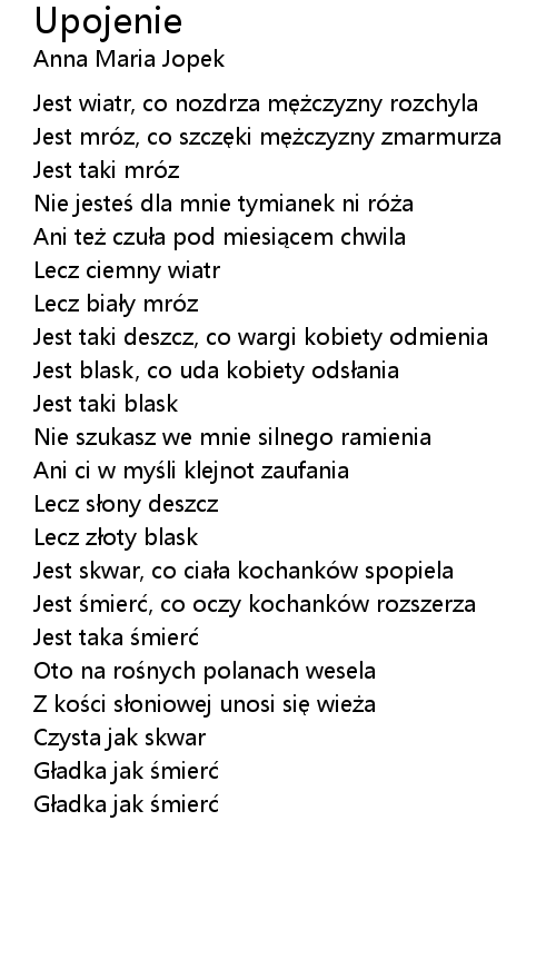 | Jest śmierć, co oczy kochanków rozszerza | |