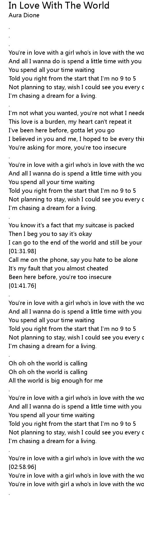 You're in love with girl a who's in love with the world |