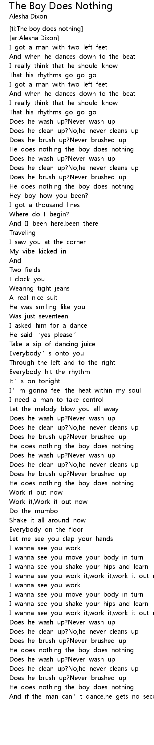 | [00:24.78] | Does he clean up? No, he never cleans up |