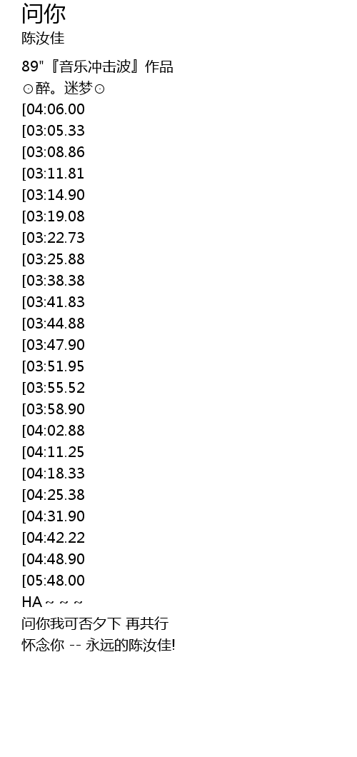 | [01:44.80][04:11.25][04:59.90] | wen ni ke xiang zhi wo xin |