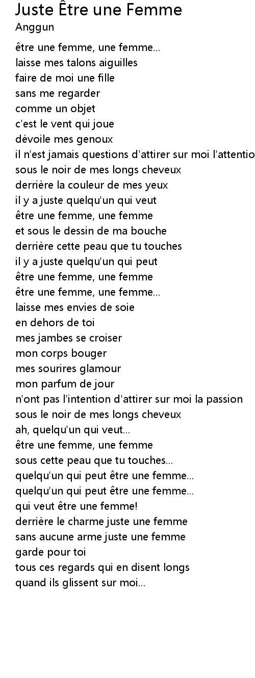 | Song | Juste Être une Femme |