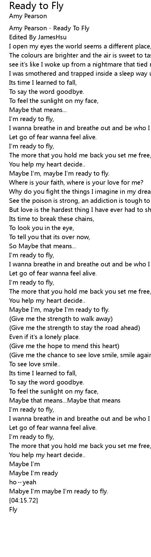 | [00:01.73] | Amy Pearson Ready To Fly |