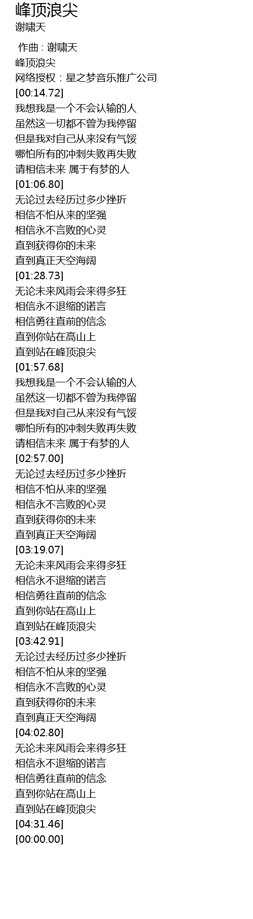 | [04:22.04] | 直到站在峰顶浪尖 |