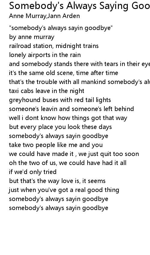 that's the trouble with all mankind somebody's always sayin goodbye |