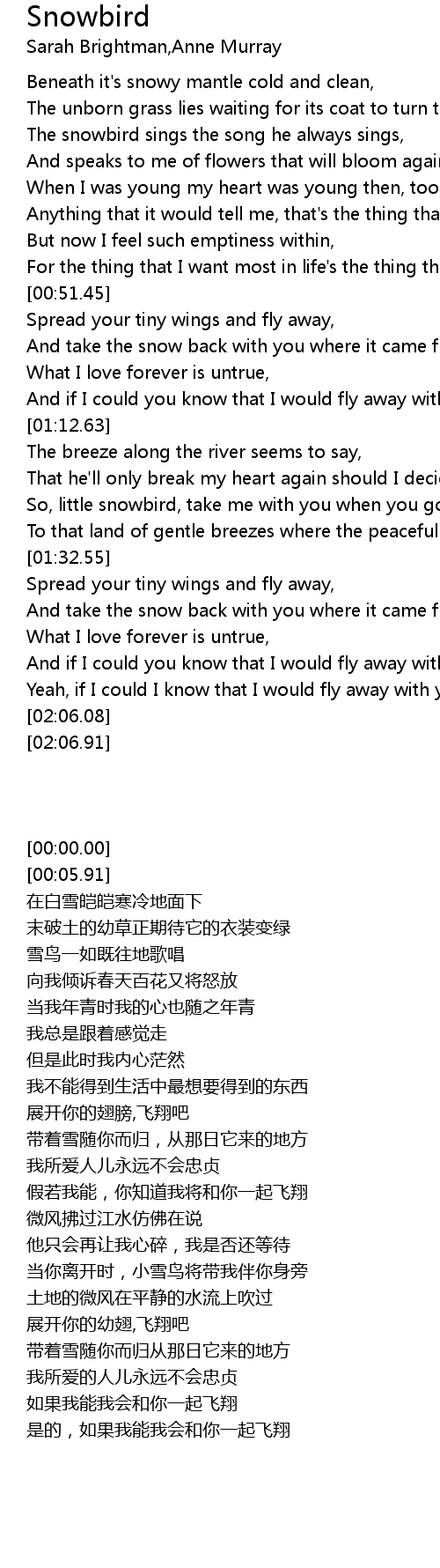 So, little snowbird, take me with you when you go, |