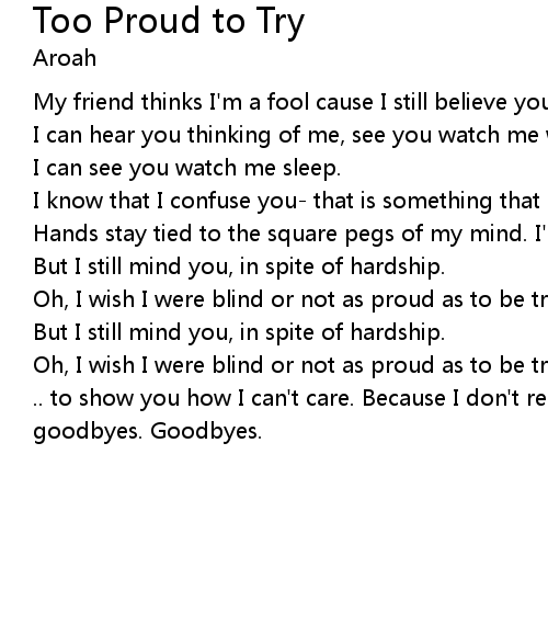 .. to show you how I can't care. Because I don't really, don't care about goodbyes. Goodbyes. |